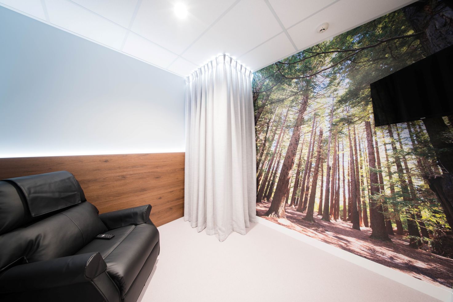 Interior design elements were carefully considered to create a bright and calming environment, with feature panelling, wall graphics, sheer curtains and soft lighting adding a homely touch to make patients feel comfortable during their visit.